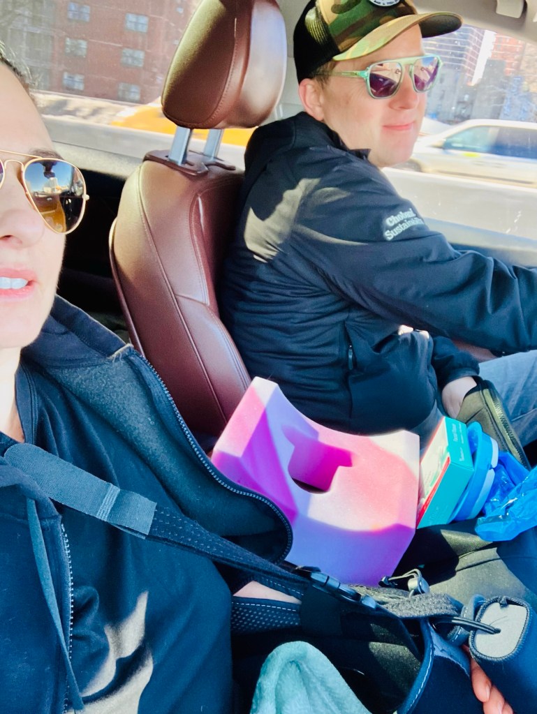When I was ready they called Neil back and he sat with me and then he went and got the car when I was ready. They made sure I wasn’t sick. The ride home couldn’t have been smoother. The nerve block, again, was absolutely incredible and I didn’t feel a thing. The traffic at that time of day wasn’t terrible. Getting out of the city always is the FDR there to Harlem River Drive to the bridge. But it was smooth. I got home, I was in bed. I didn’t feel anything so it was just lay in bed and rest while you can. So that’s that. That was surgery day and I went to sleep about 9:00.